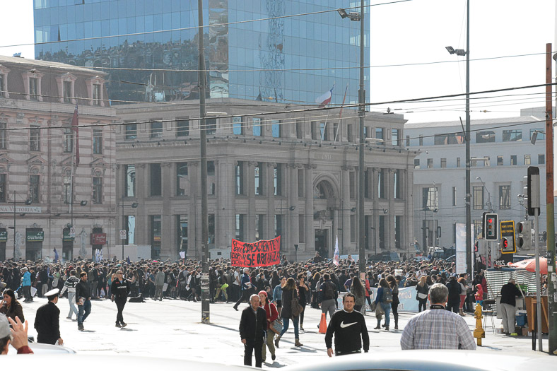 Downtown centre of Santiago. The city was founded in 1541 by Pedro de Valdivia and has today a population of 6.3m.