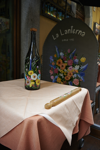 This pasta restaurant on Salita Serbelloni is famous for it's hand painted wine bottles of local scenes and flowers.