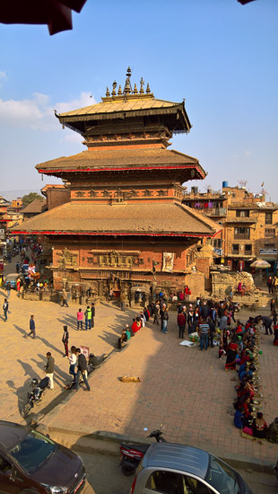 The door is on a building in Bhaktapur Durbar Square, Kathmandu